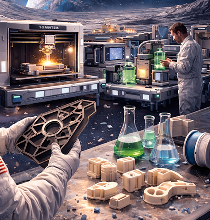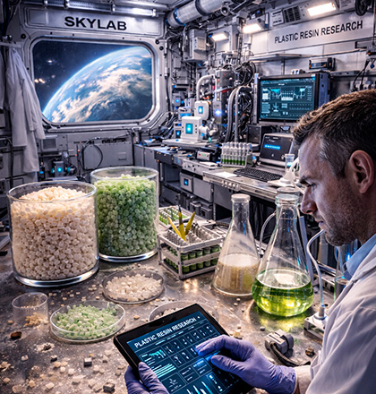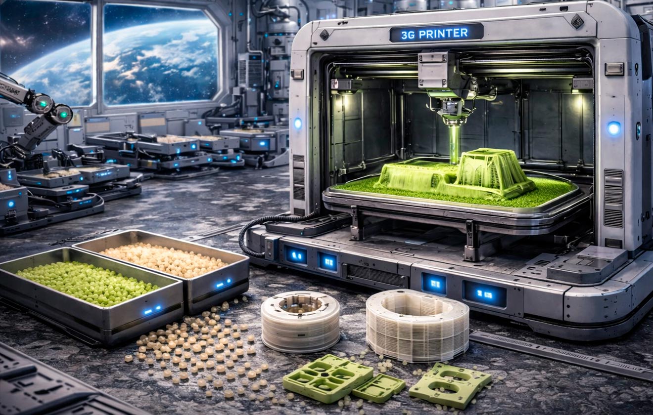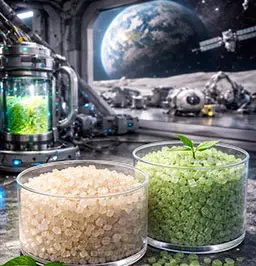 Tecnología TecnologíaEliminamos la dependencia de polímeros derivados del petróleo terrestre para crear un ecosistema de materiales autónomo en el espacio.